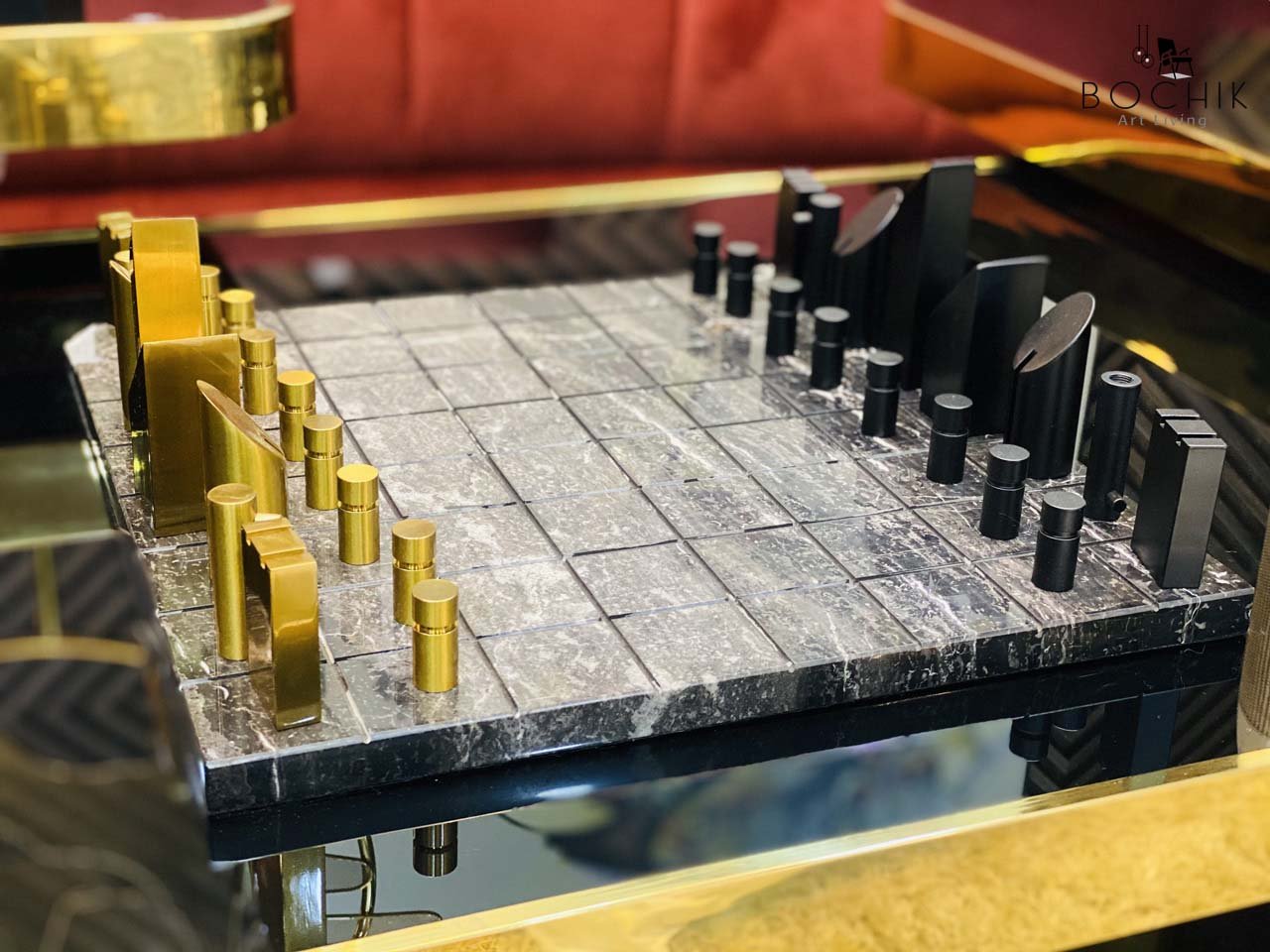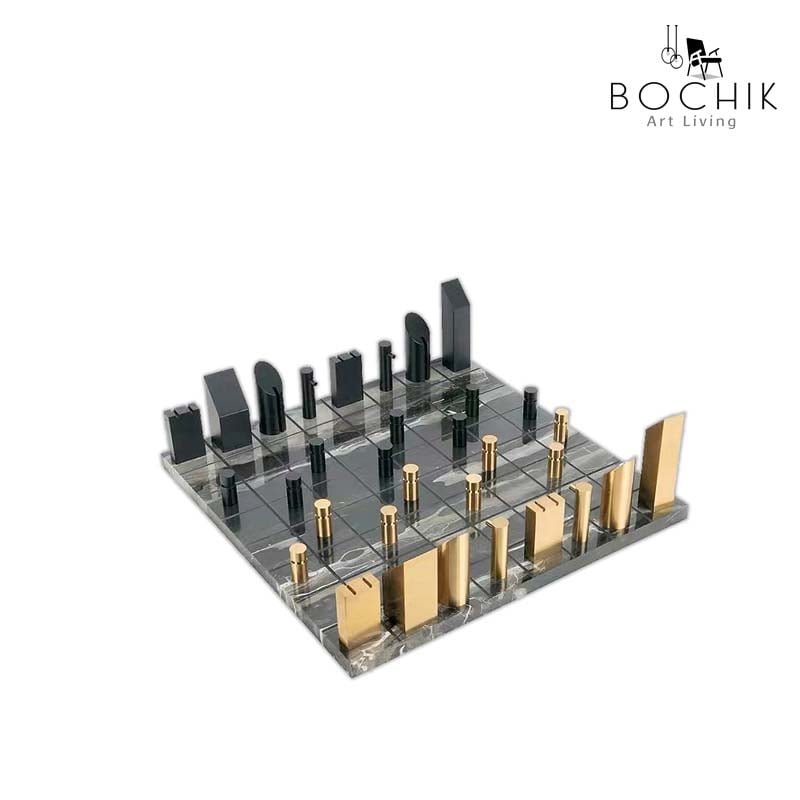 Jeu d’échecs en pierre naturel et métal couleur or et noir