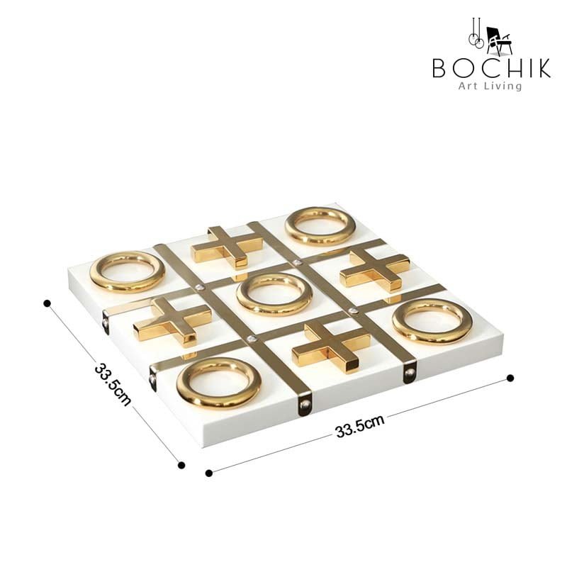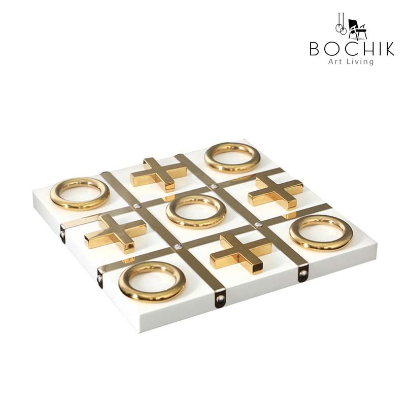 Jeu de Morpion Chic en Acier inoxydable et support blanc