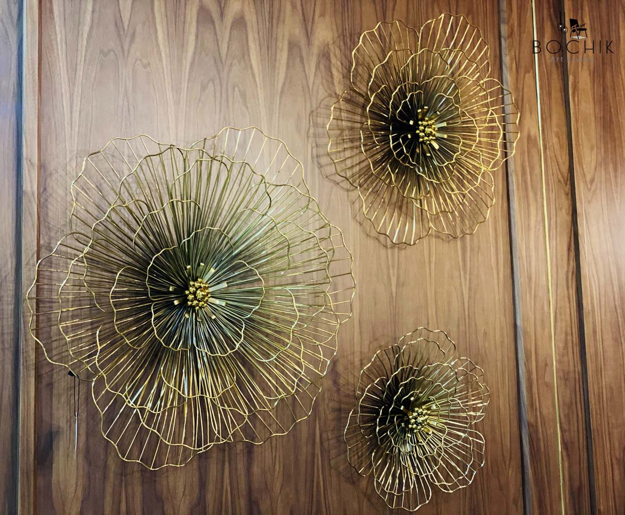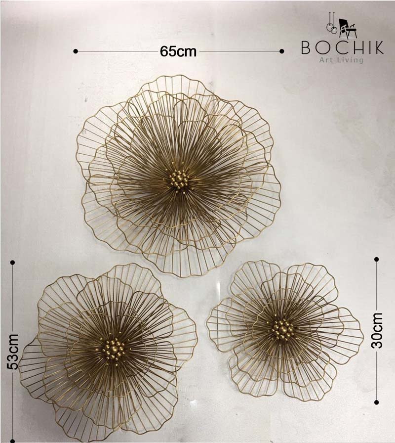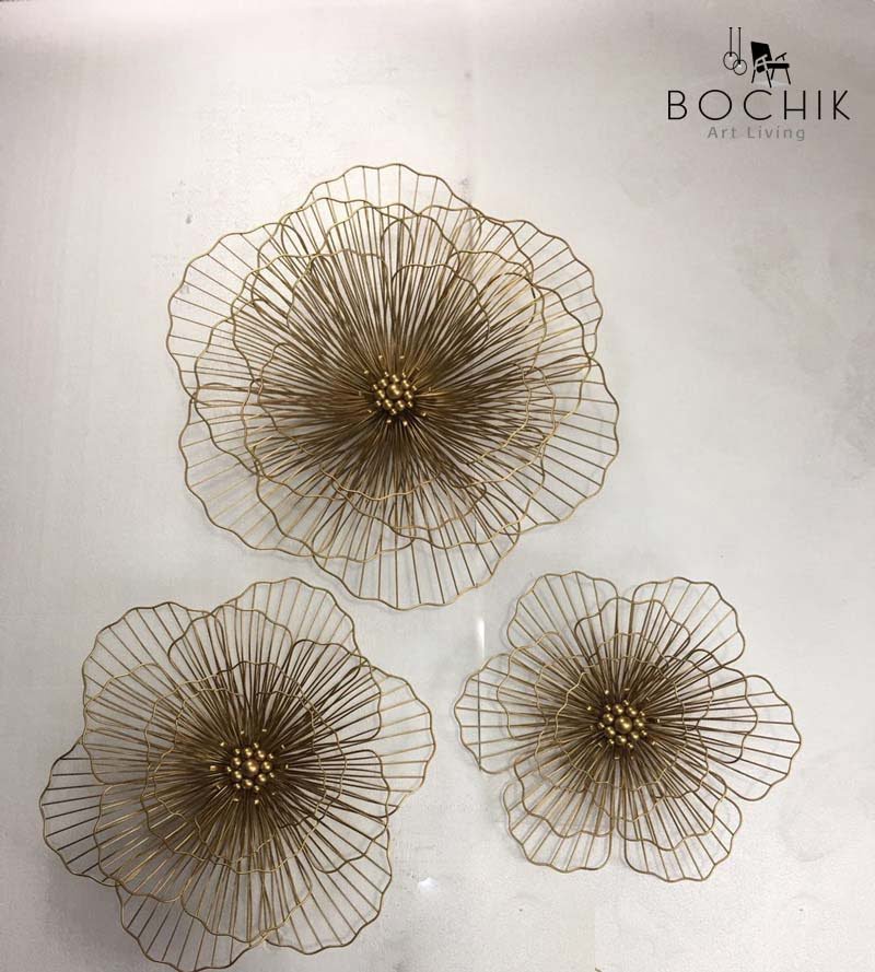Trio de décoration murale en métal doré sous forme de roses