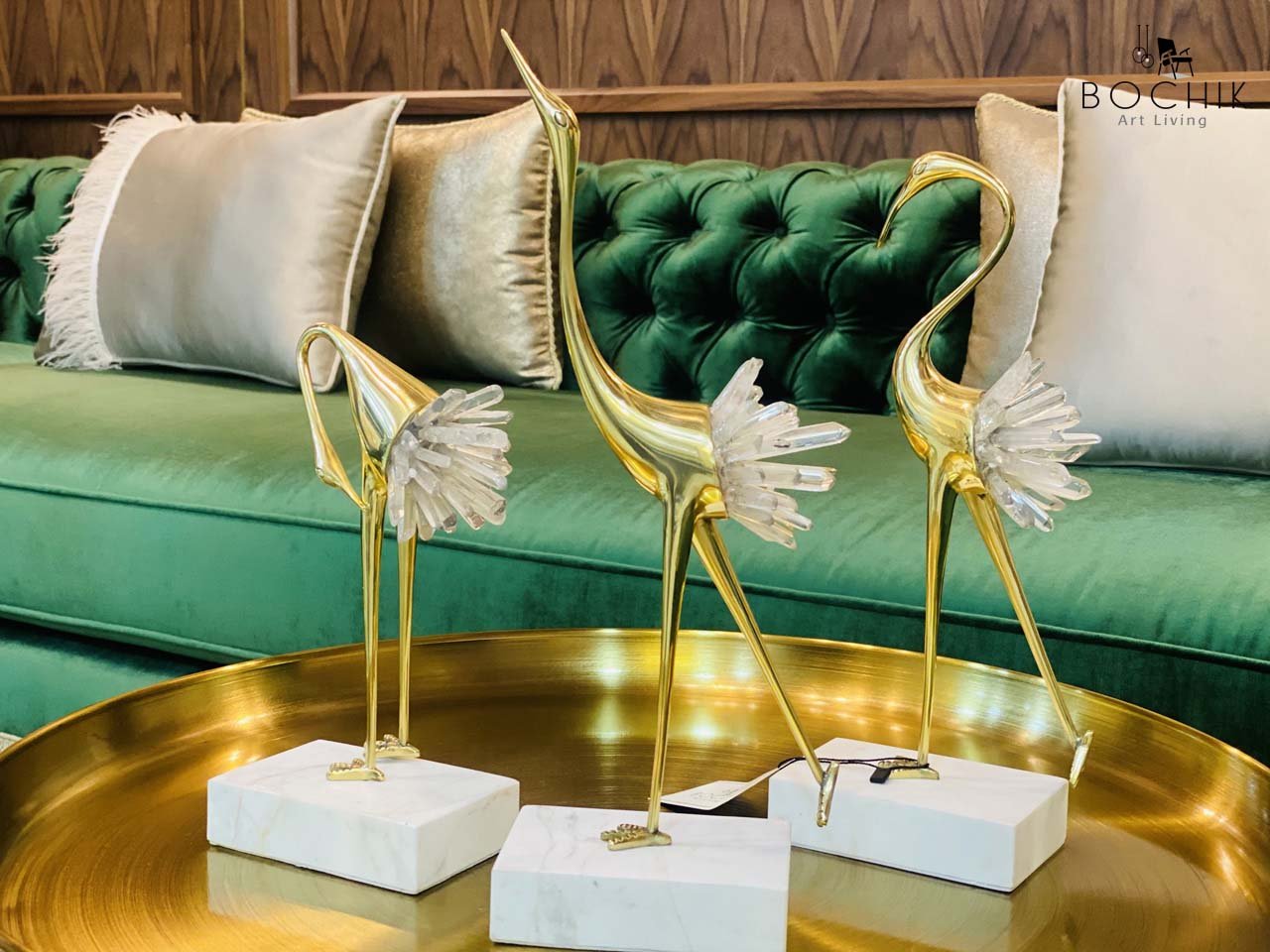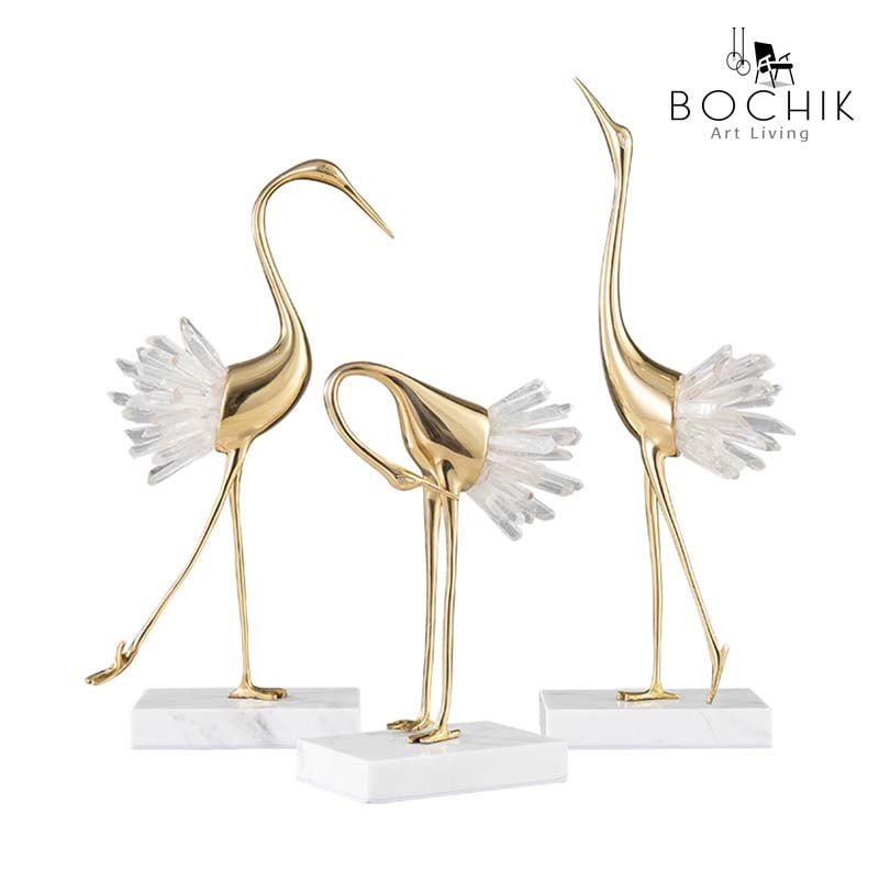 Trio de cygnes en Laiton et cristal