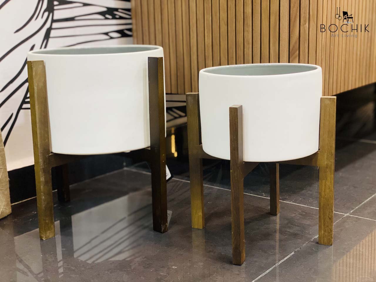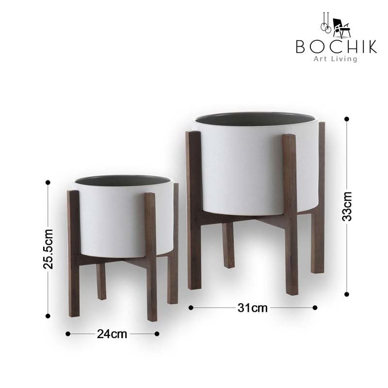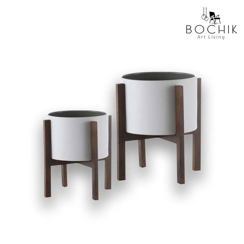 Duo de Portes Bougie en céramique Blanche avec support en bois couleur Noyer