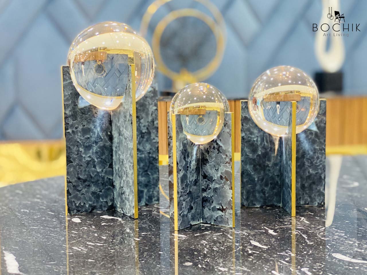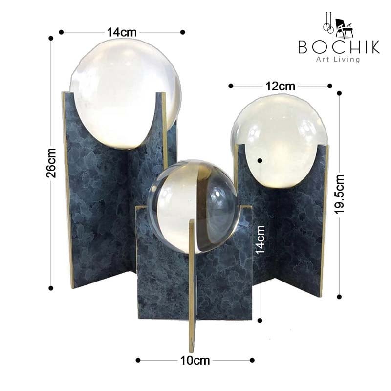 Trio de décorations de boulle de Crystal avec support en métal Bleu frappé