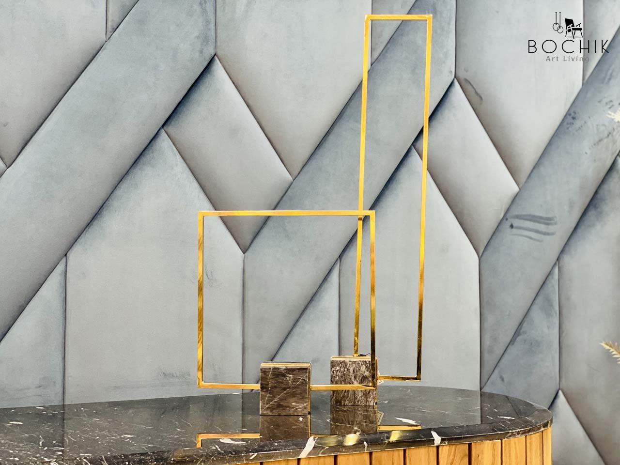 Duo de carrés décoratifs en Laiton et marbre Noir.