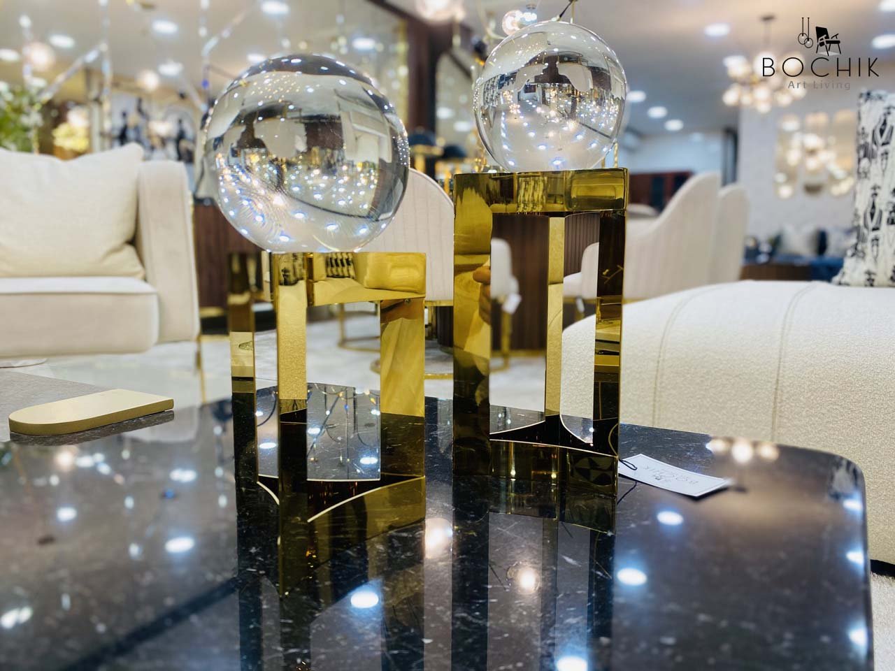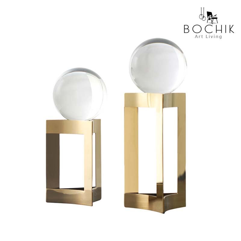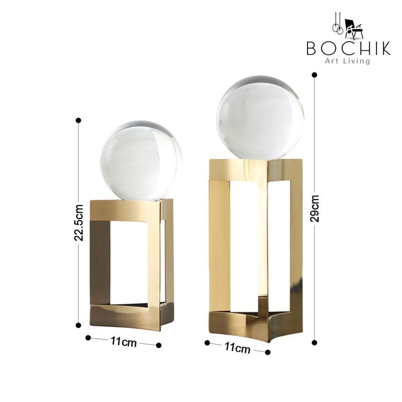 Duo décorations design en acier inoxydable couleur or avec sa boule de Crystal.