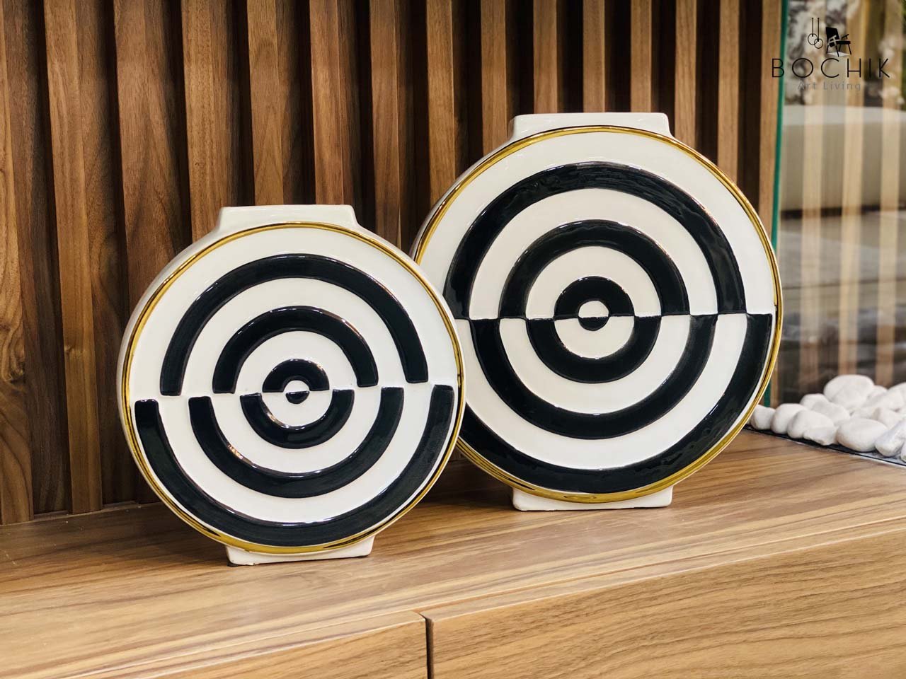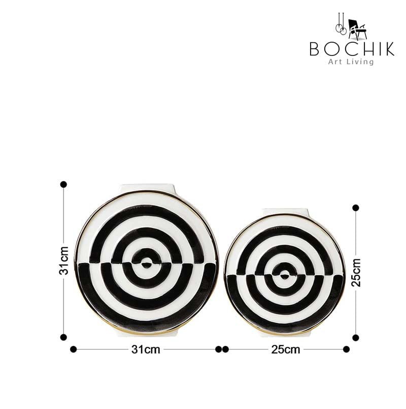Duo de vases ronds en céramique blanc et noir