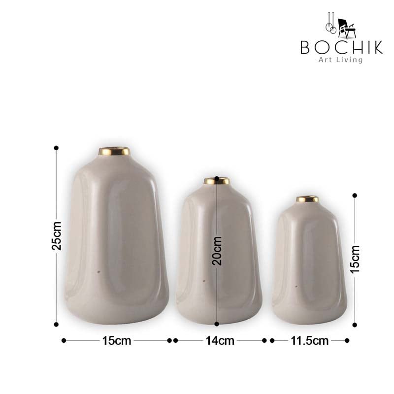 Trio de Vases Design en céramique Couleur Taupe et dessus en Doré