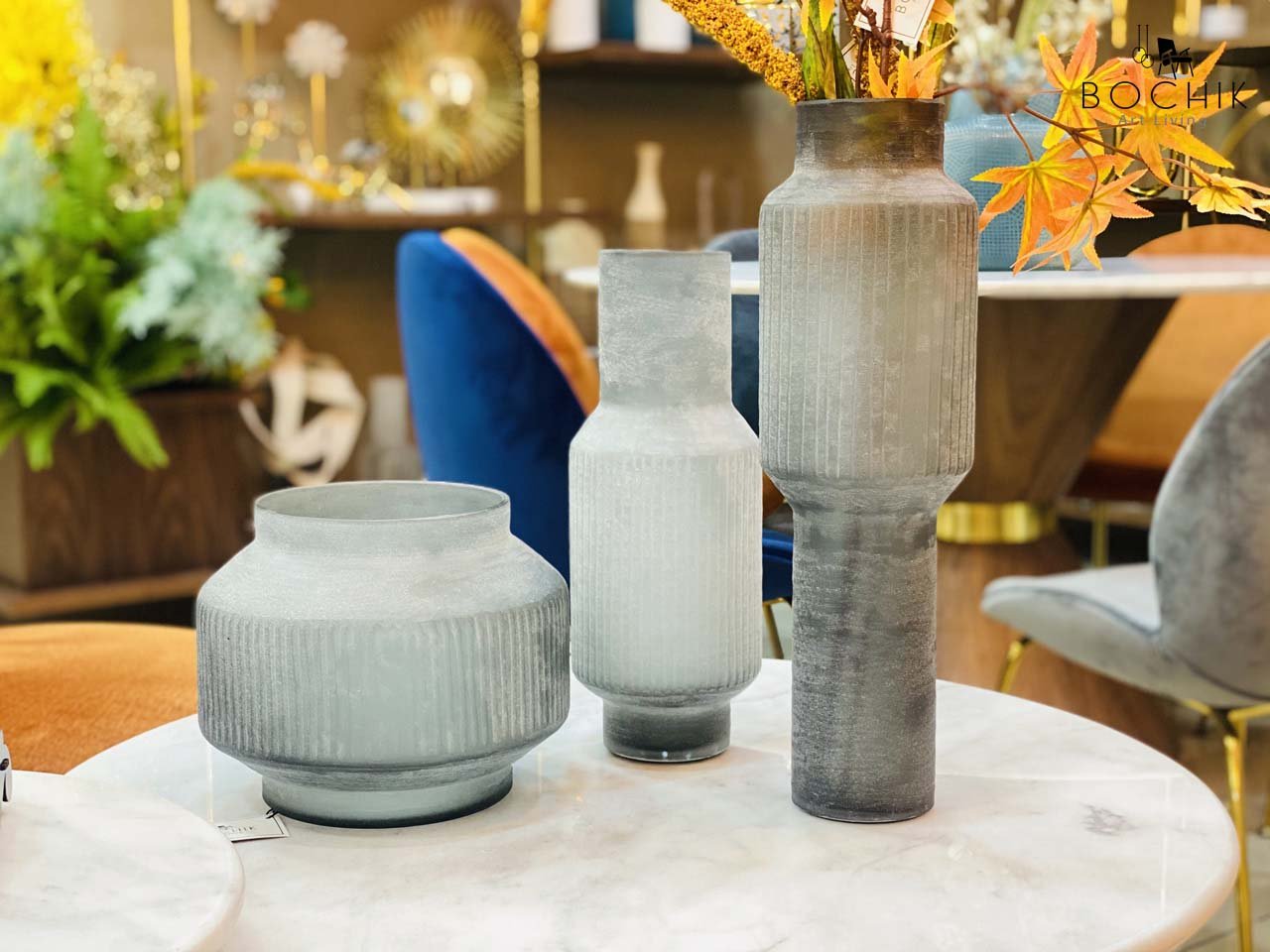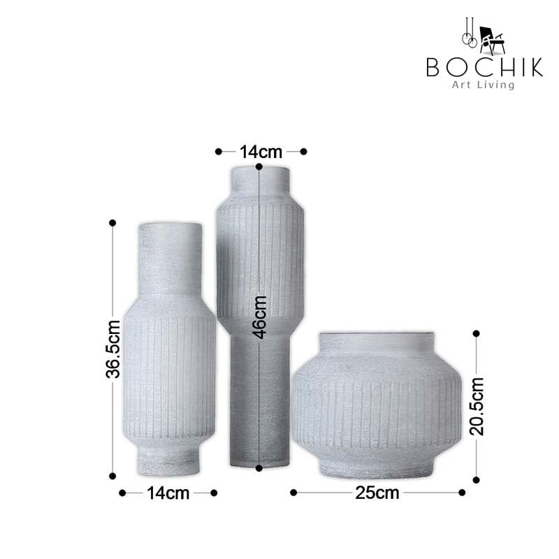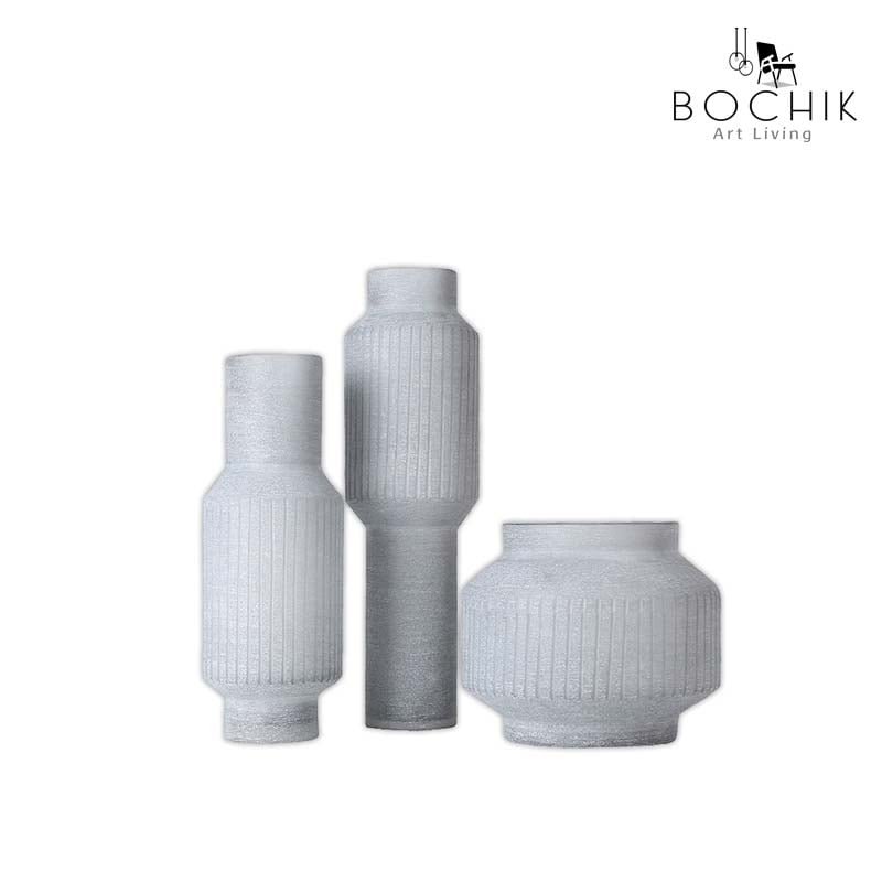 Trio de vases design en verre gris mat