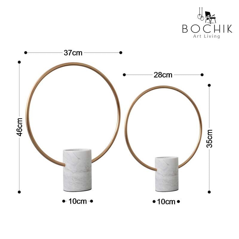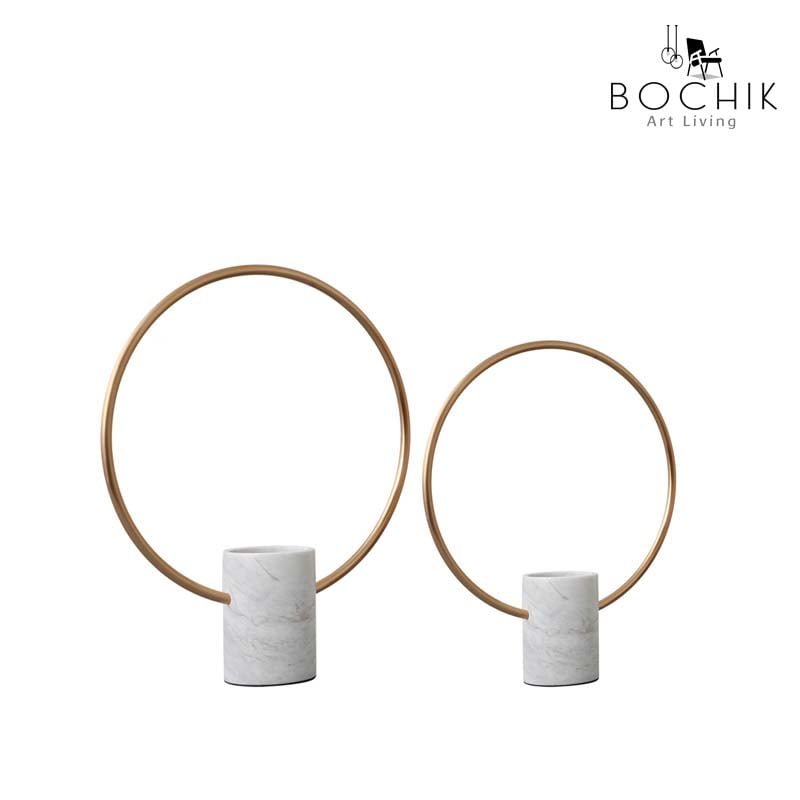 Duo de vases en Marbre naturel Blanc et anneau en acier Inoxydable couleur Or