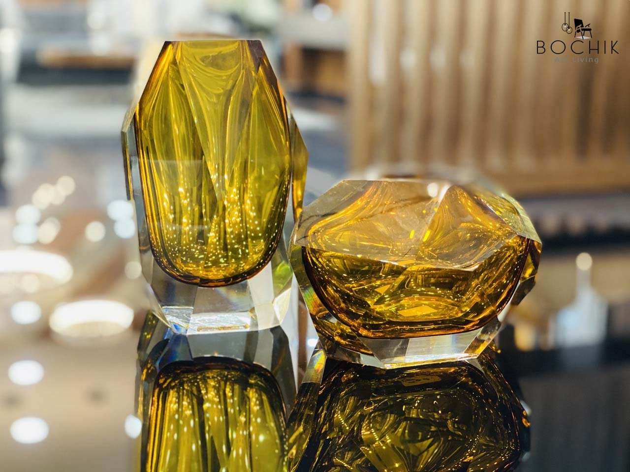 Duo de vases de luxe en forme de diamant en Crystal orange