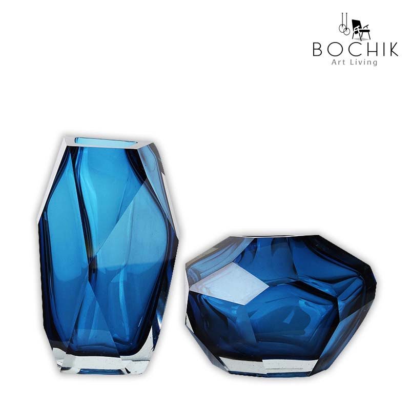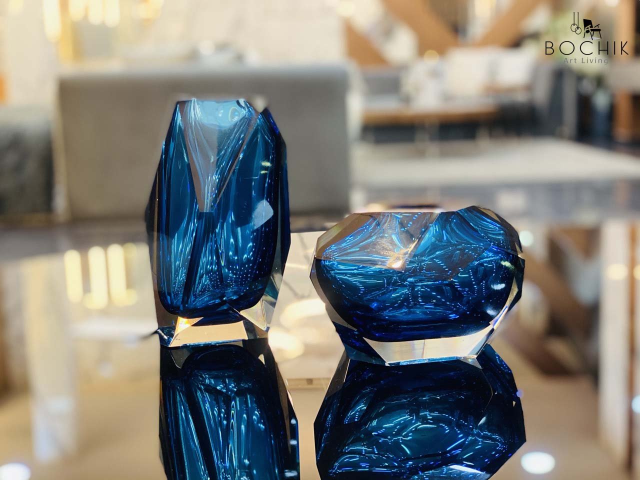 Duo de vases de luxe en forme de diamant en Crystal bleu