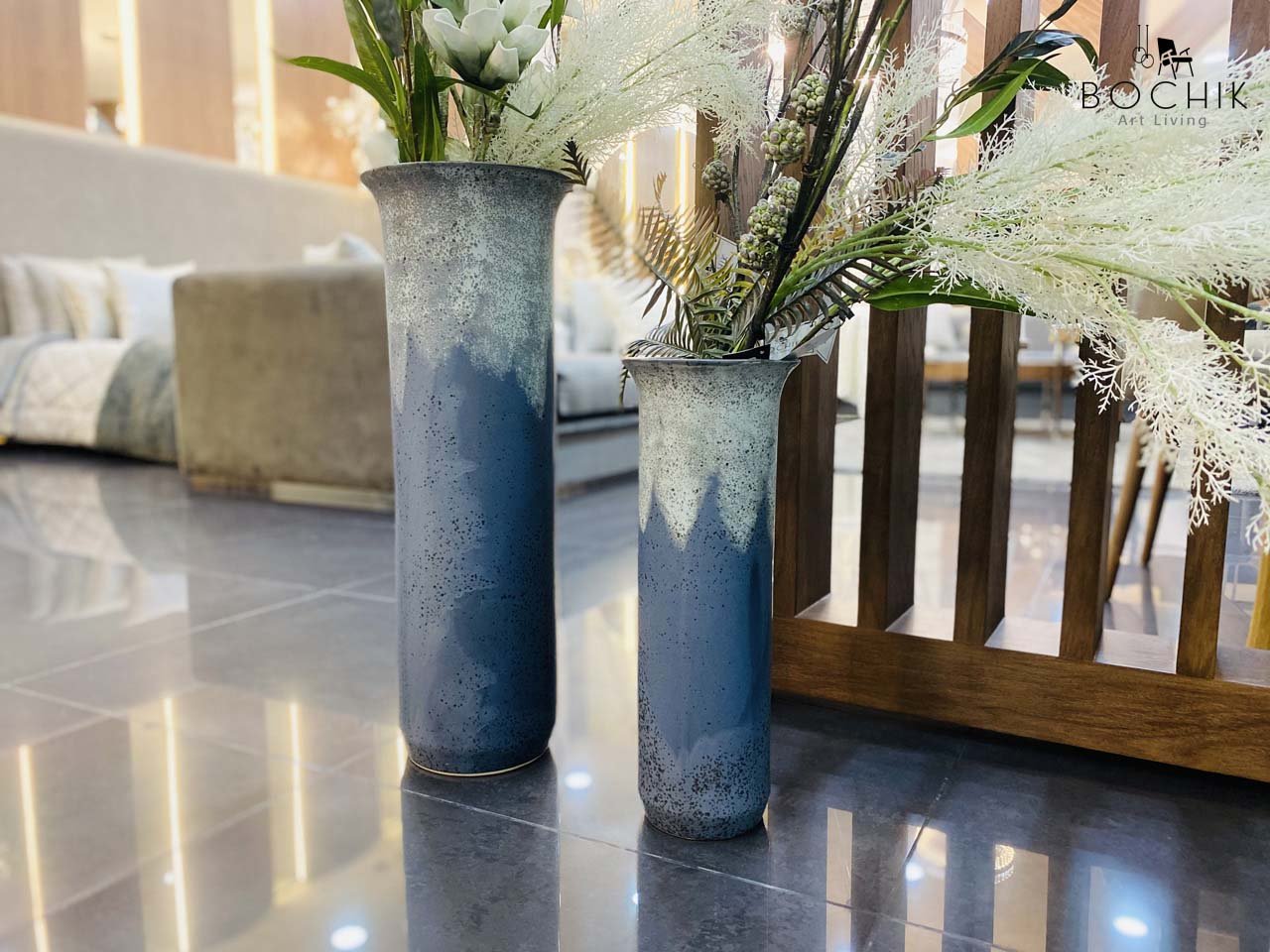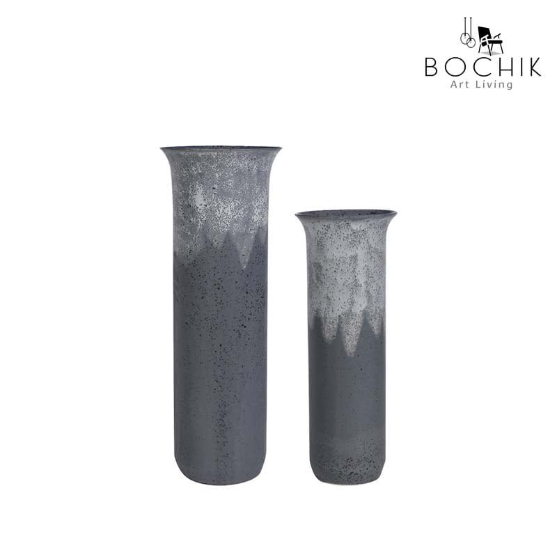 Duo de vases en céramique émaillée couleur grise