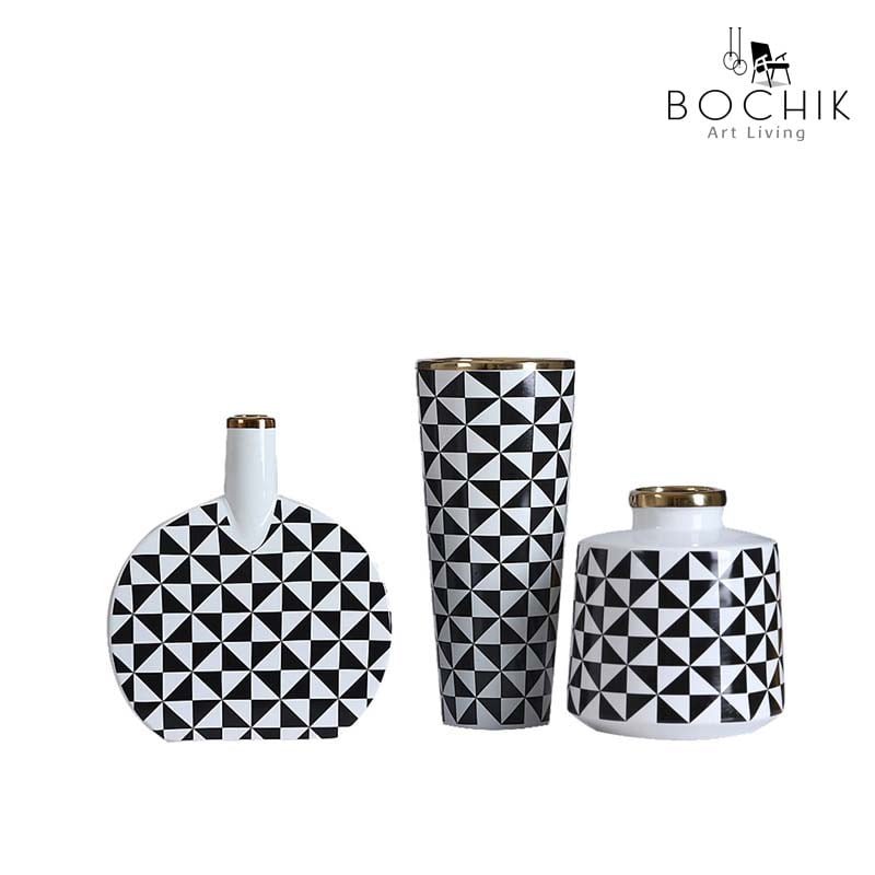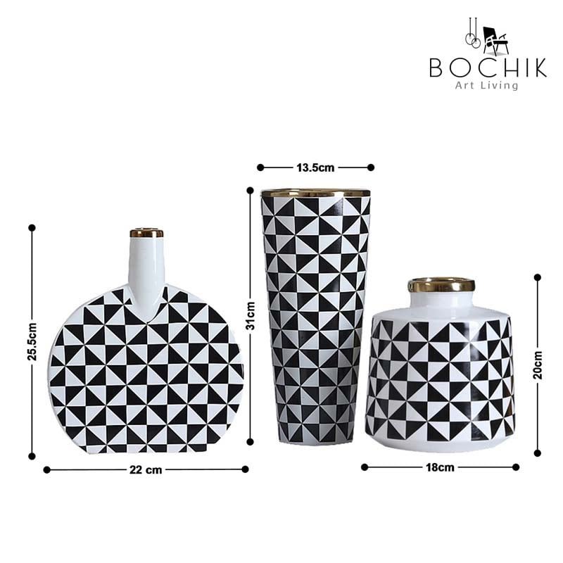 Trio de vases très design à motif carreaux noir et blanc