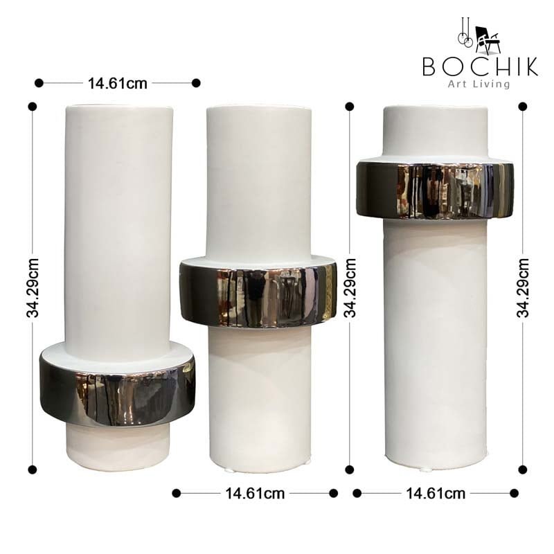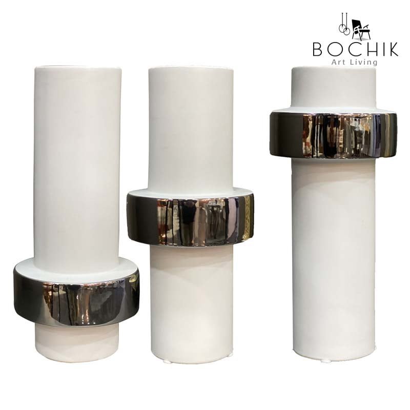 Trio de Vases décoratifs en céramique blanc avec contour en noir Brillant