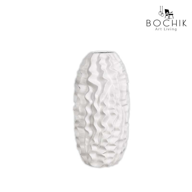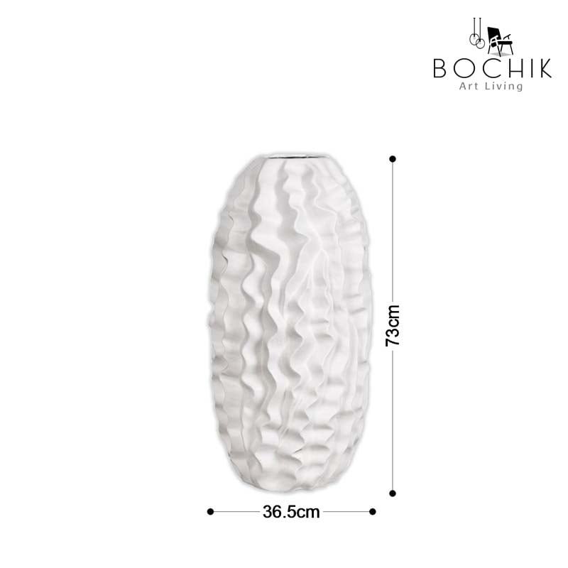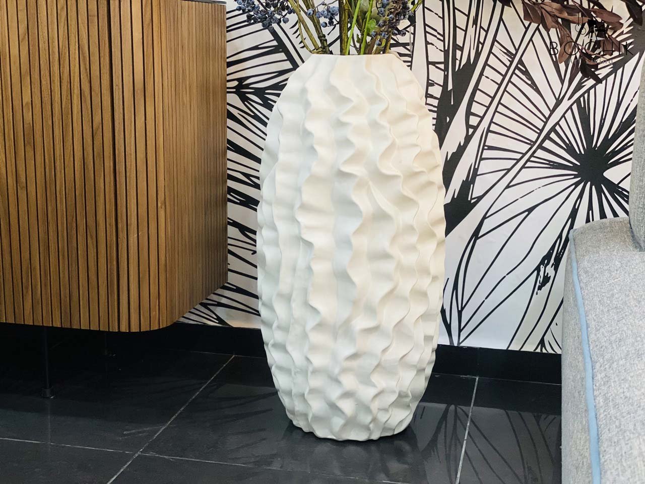 Grand Vase en céramique émaillée en relief, couleur blanche