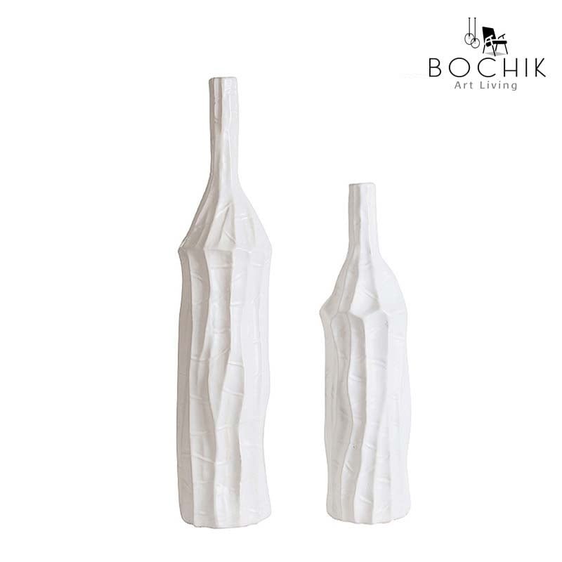 Duo de vases en céramique blanc sous forme de bouteille
