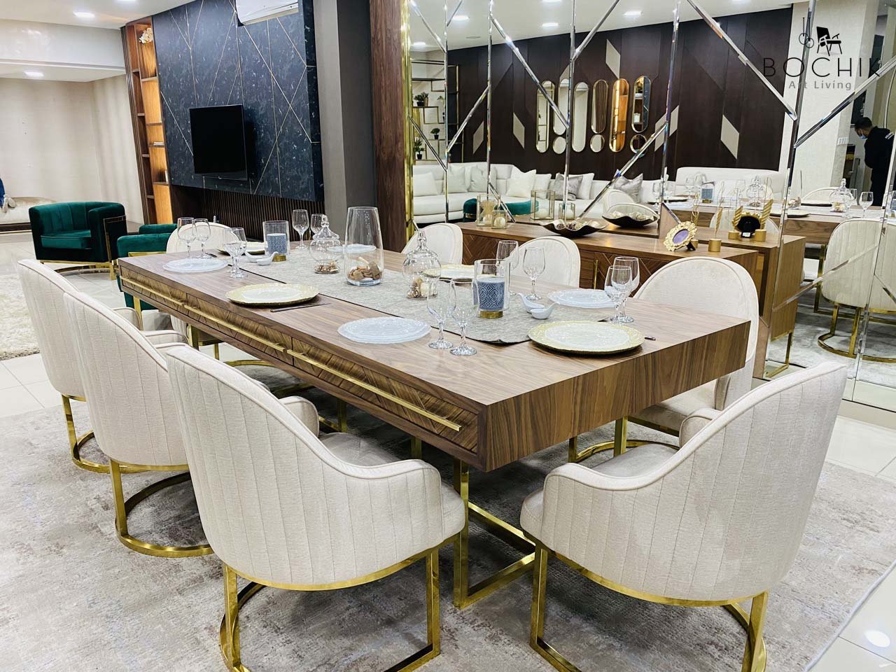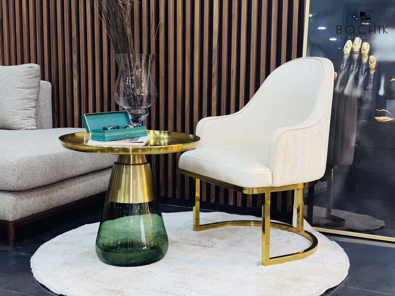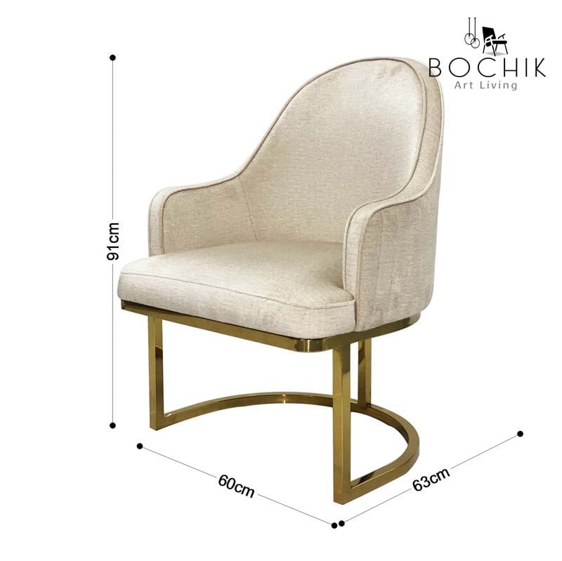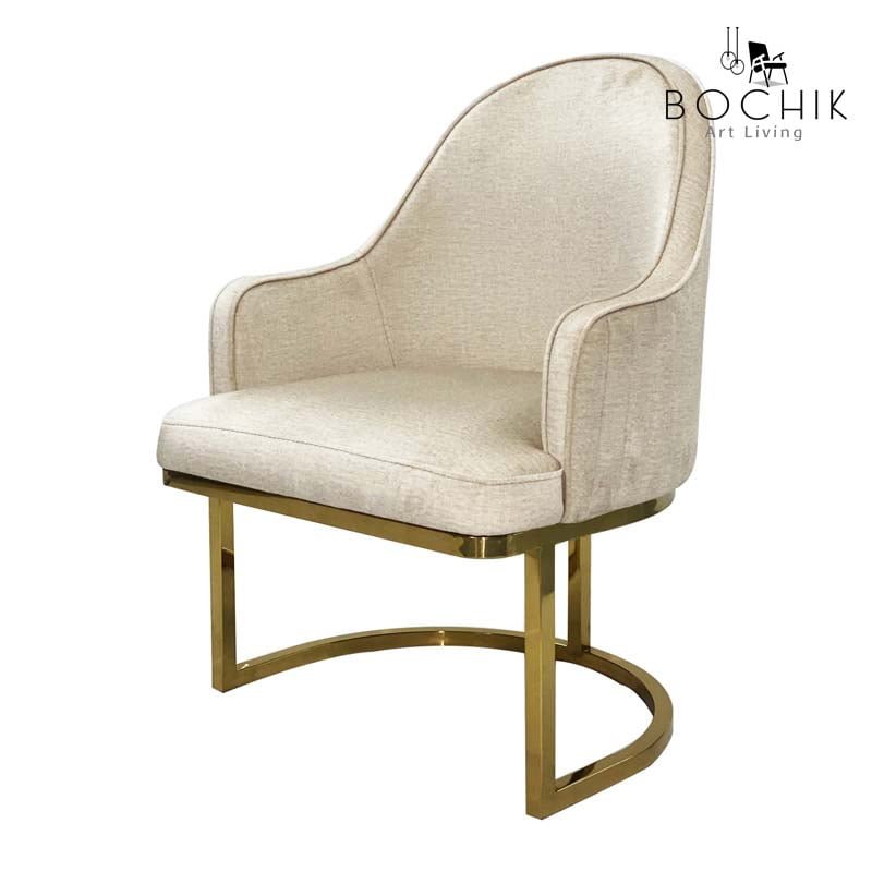 Chaise de luxe en velours blanc cassé avec socle en Acier Inoxidable Couleur Or