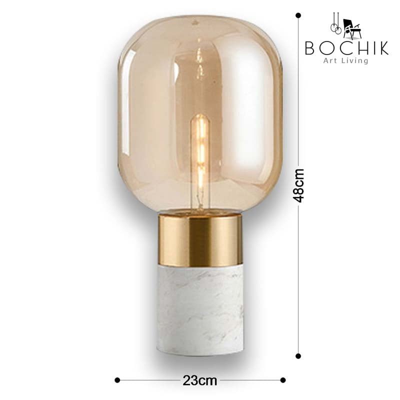 Abat-jour ultra tendance en Marbre véritable blanc et verre couleur doré