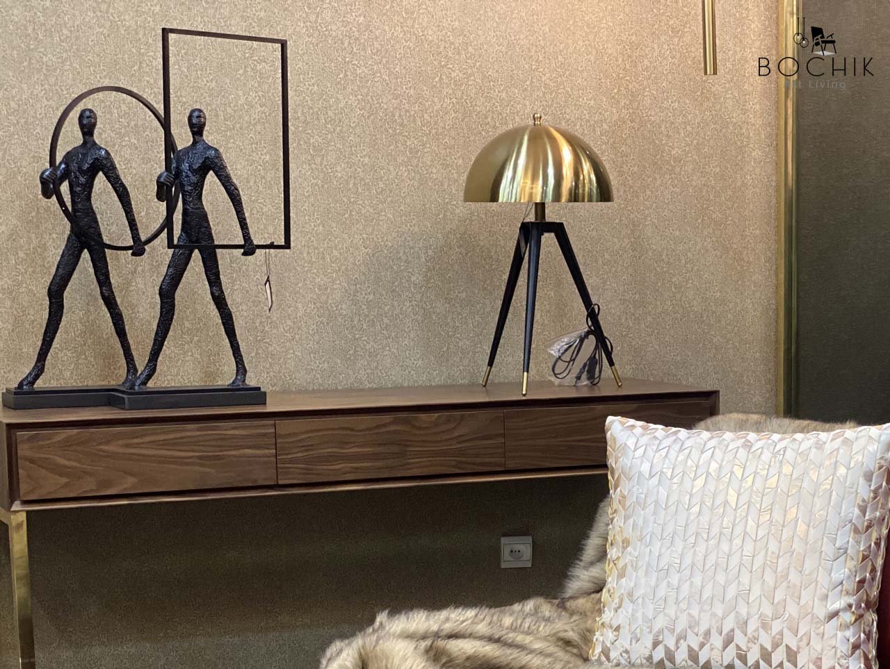 Abat-jour style cloche en acier inoxydable couleur OR & piétement noir