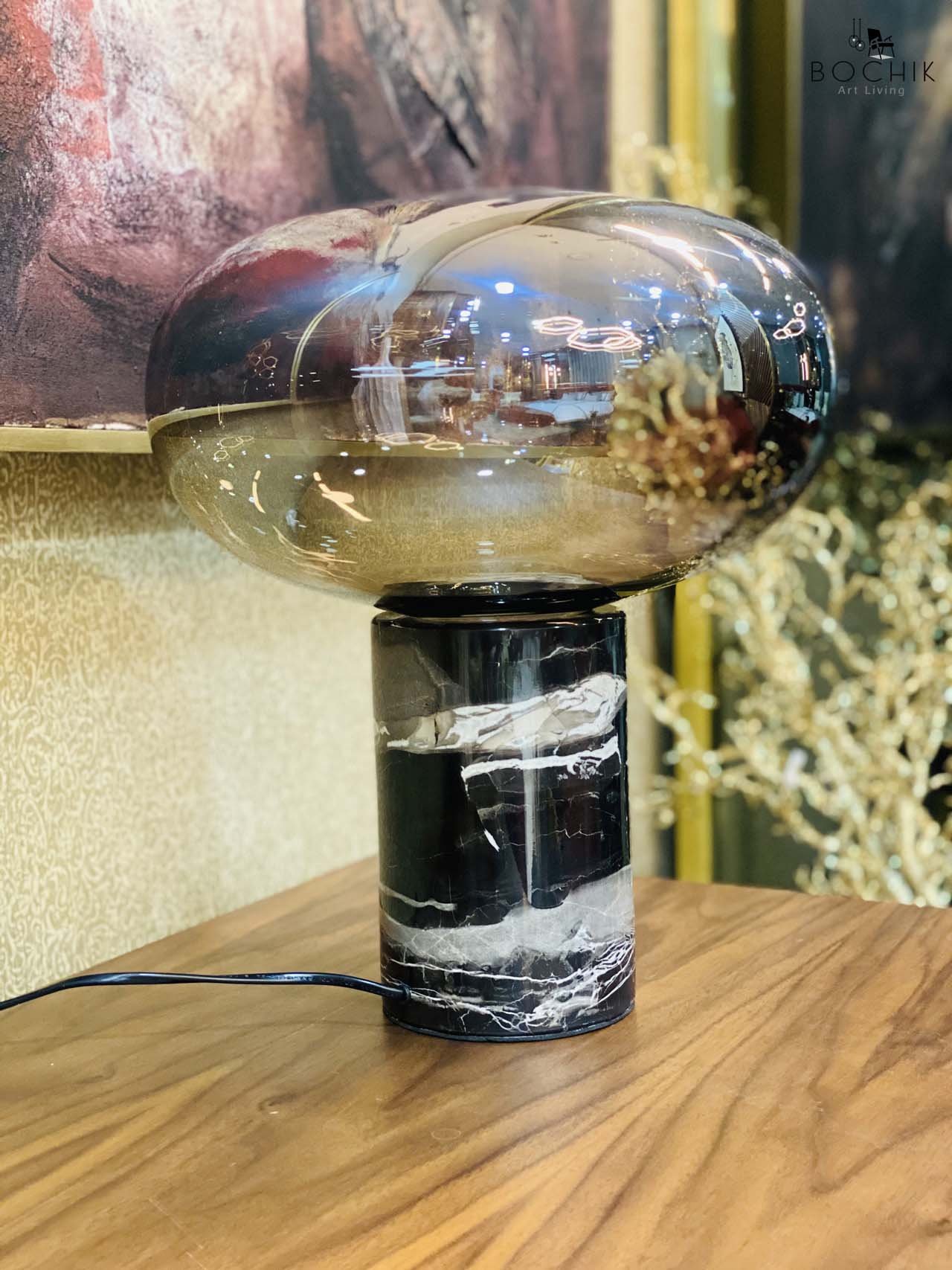 Abat-jour ultra tendance en Marbre noir et verre gris fumé