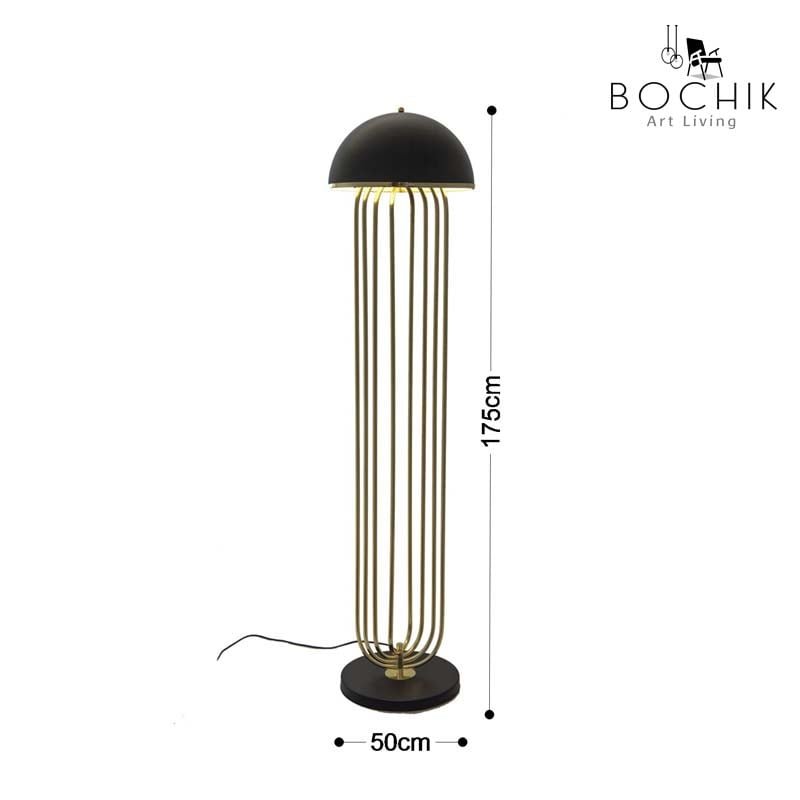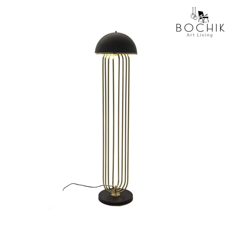 Lampadaire SALI Bis chic et tendance en acier inoxydable couleur or et dessus en acrylique couleur noir.