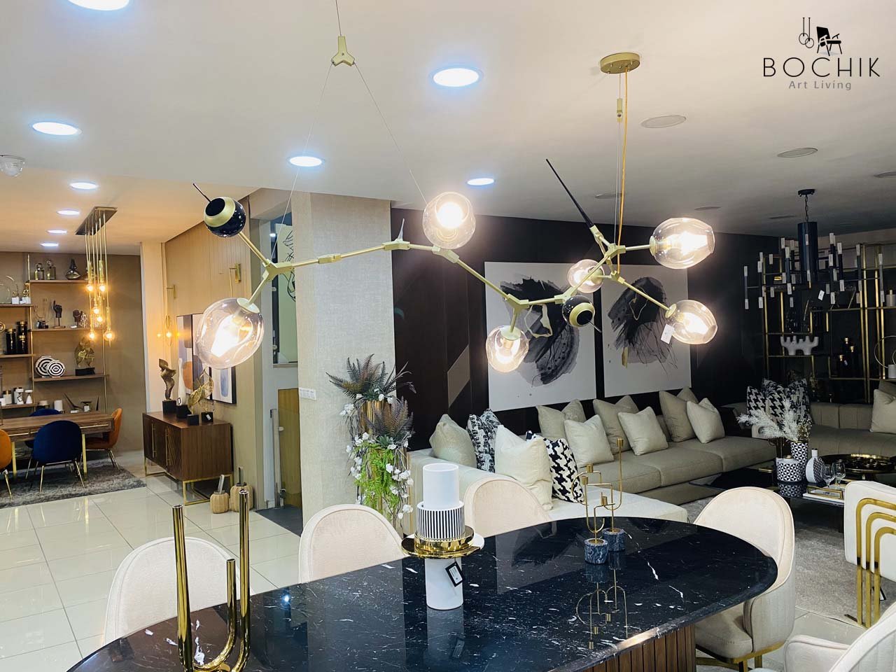 Lustre de salle à manger futuriste en Métal et verre noir, blanc et gris fumé