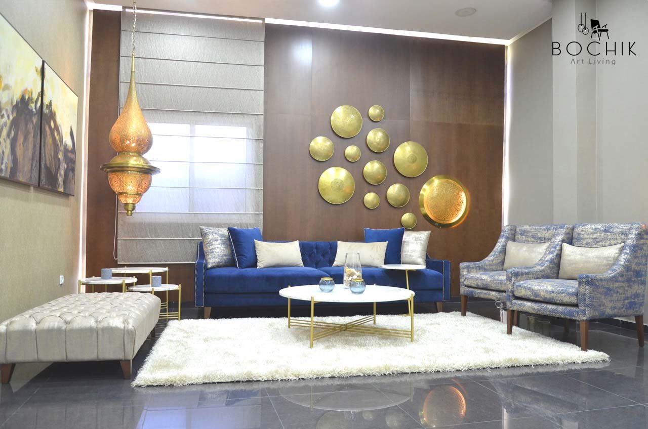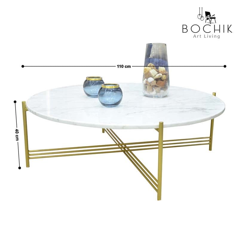 Table basse avec piétement en métal laqué Or et plateau en marbre blanc Ibiza