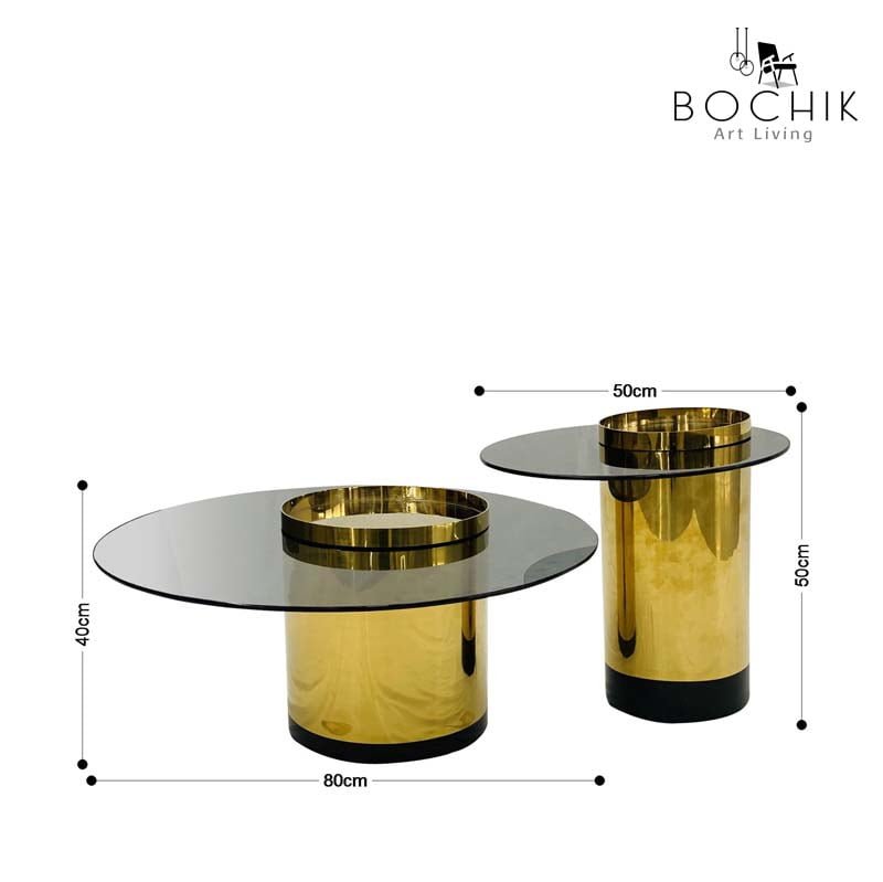 Ensemble de tables basses BOND chic et tendance avec pied en Acier Inoxydable Couleur Or et plateau en verre trempé