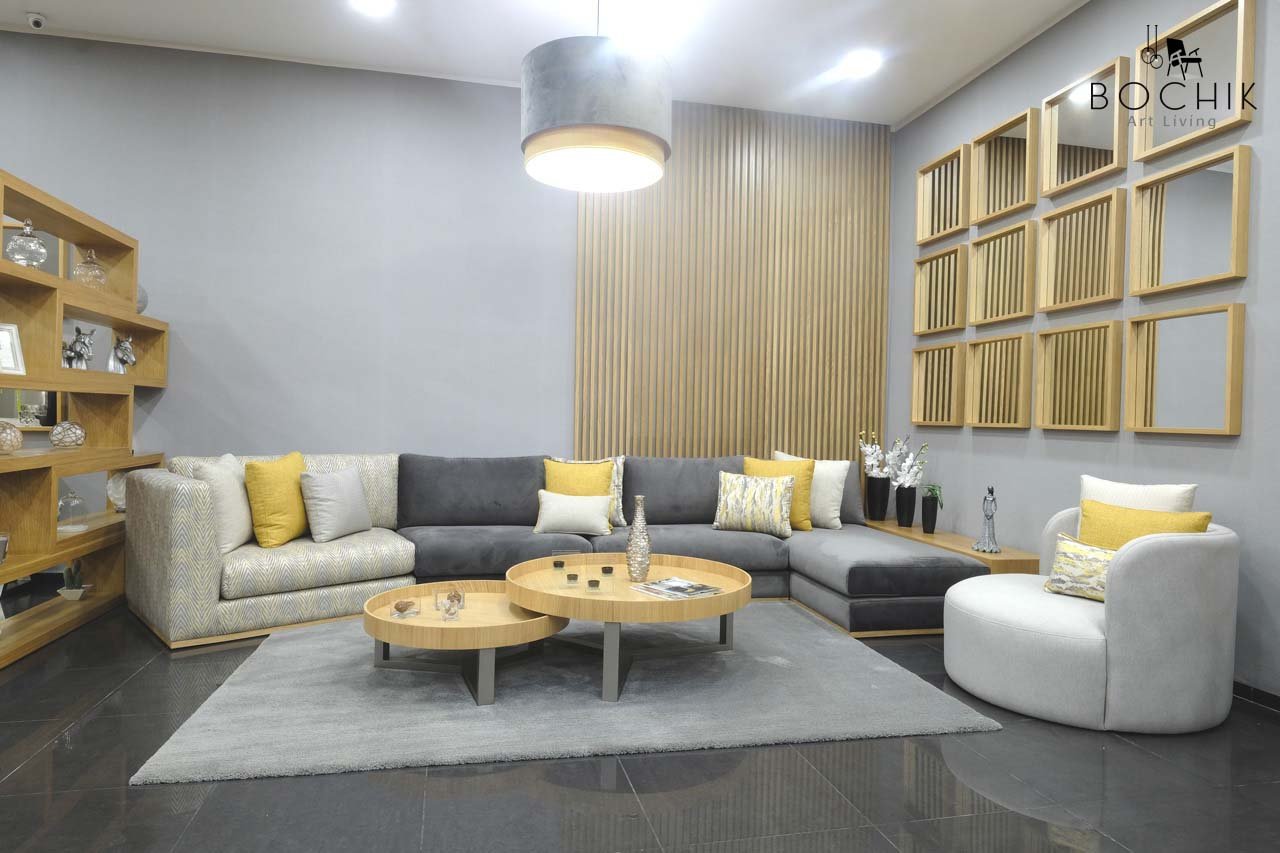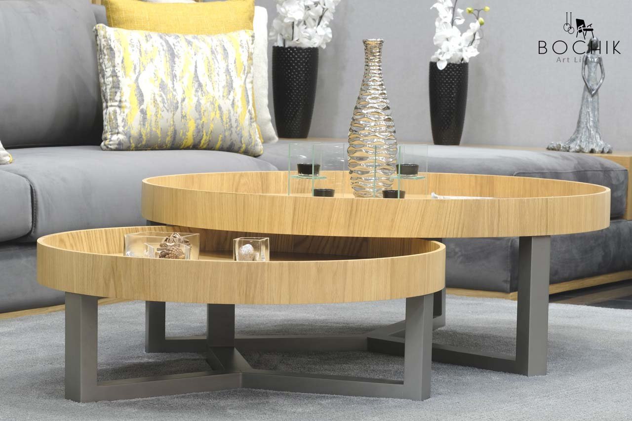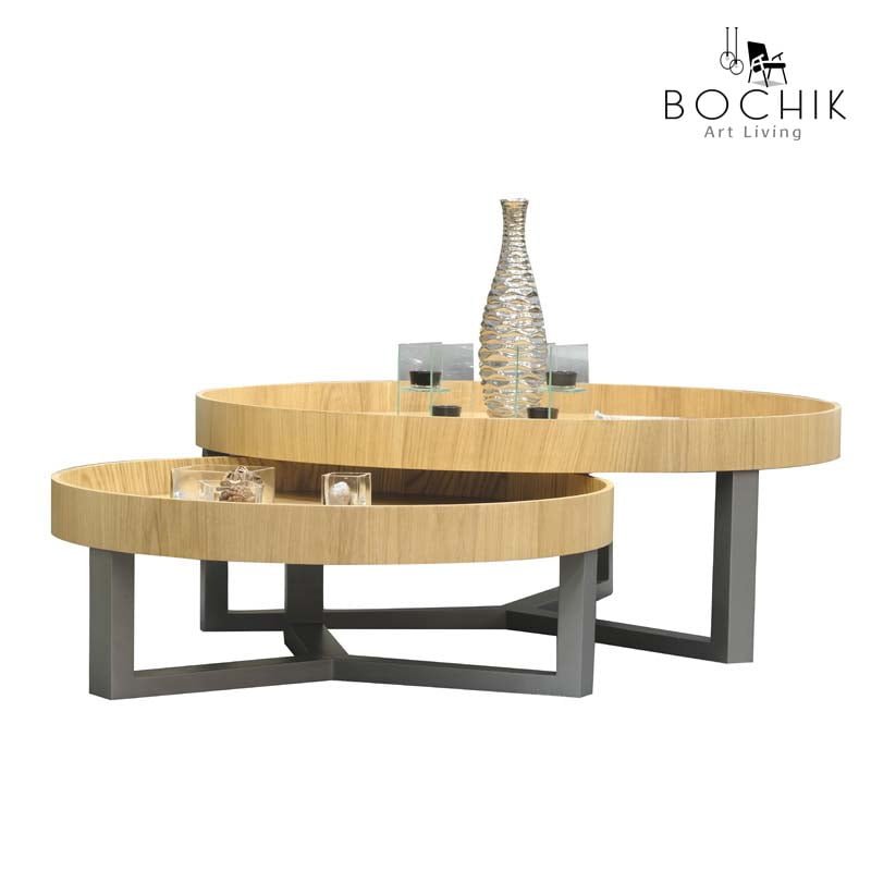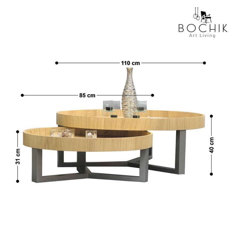 Ensemble de tables basses en bois chêne avec piétement en bois hêtre laqué gris foncé