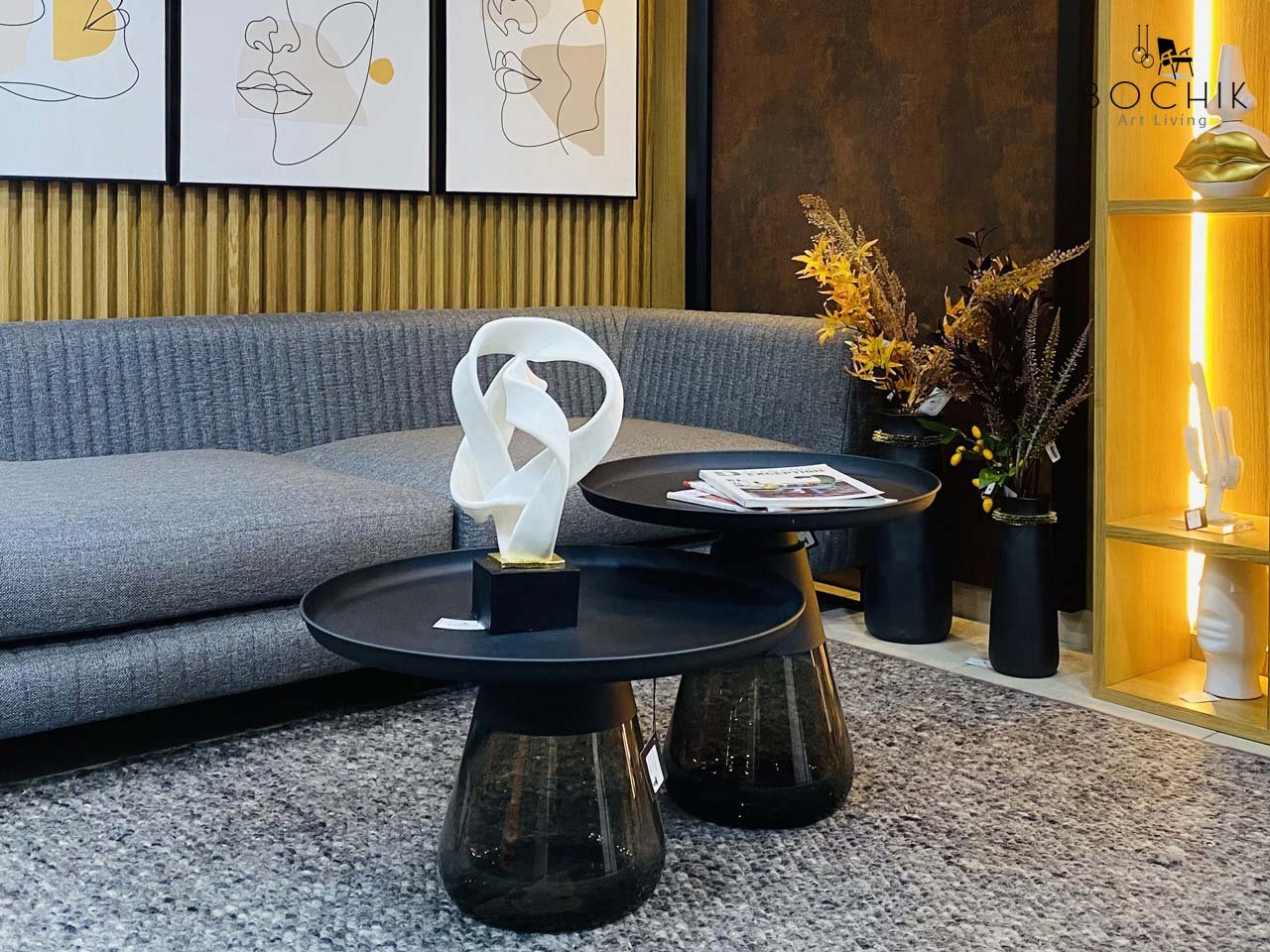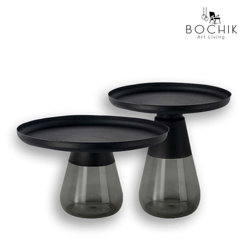 Duo de table basse tendance en verre trempé noir avec Plateau en Acier Couleur noir et d’appoint Sony tendance en verre trempé noir avec Plateau en Acier Couleur noir.