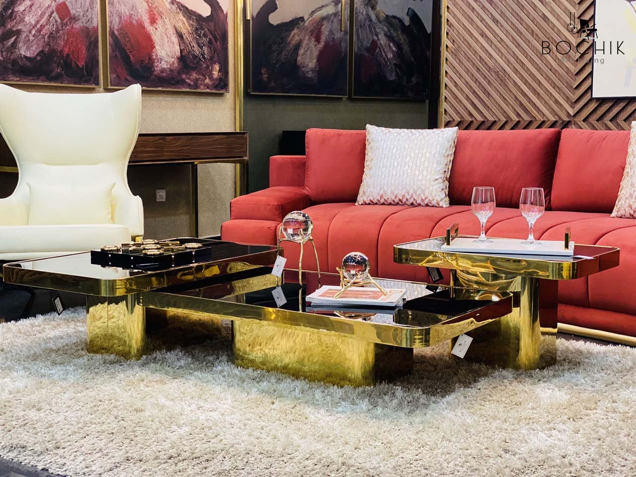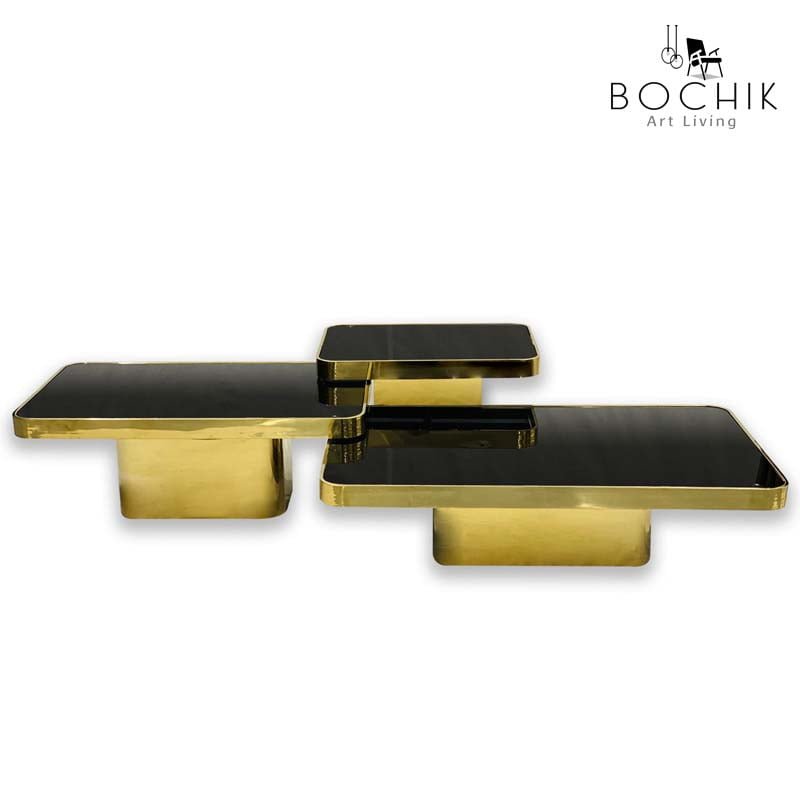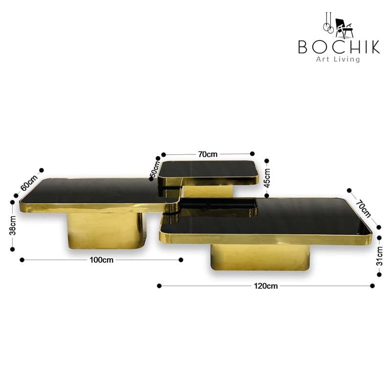 Ensemble de tables basses avec pied en Acier Inoxydable Couleur Or et plateau en verre trempé noir