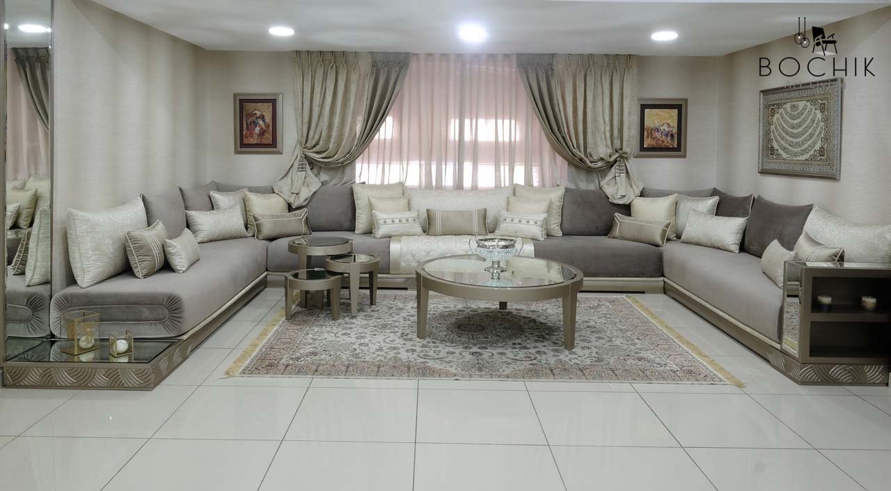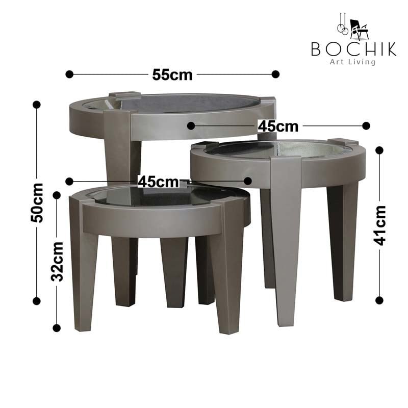 Ensemble de tables d’appoint en bois hêtre massif laqué bronze et plateau en miroir clair