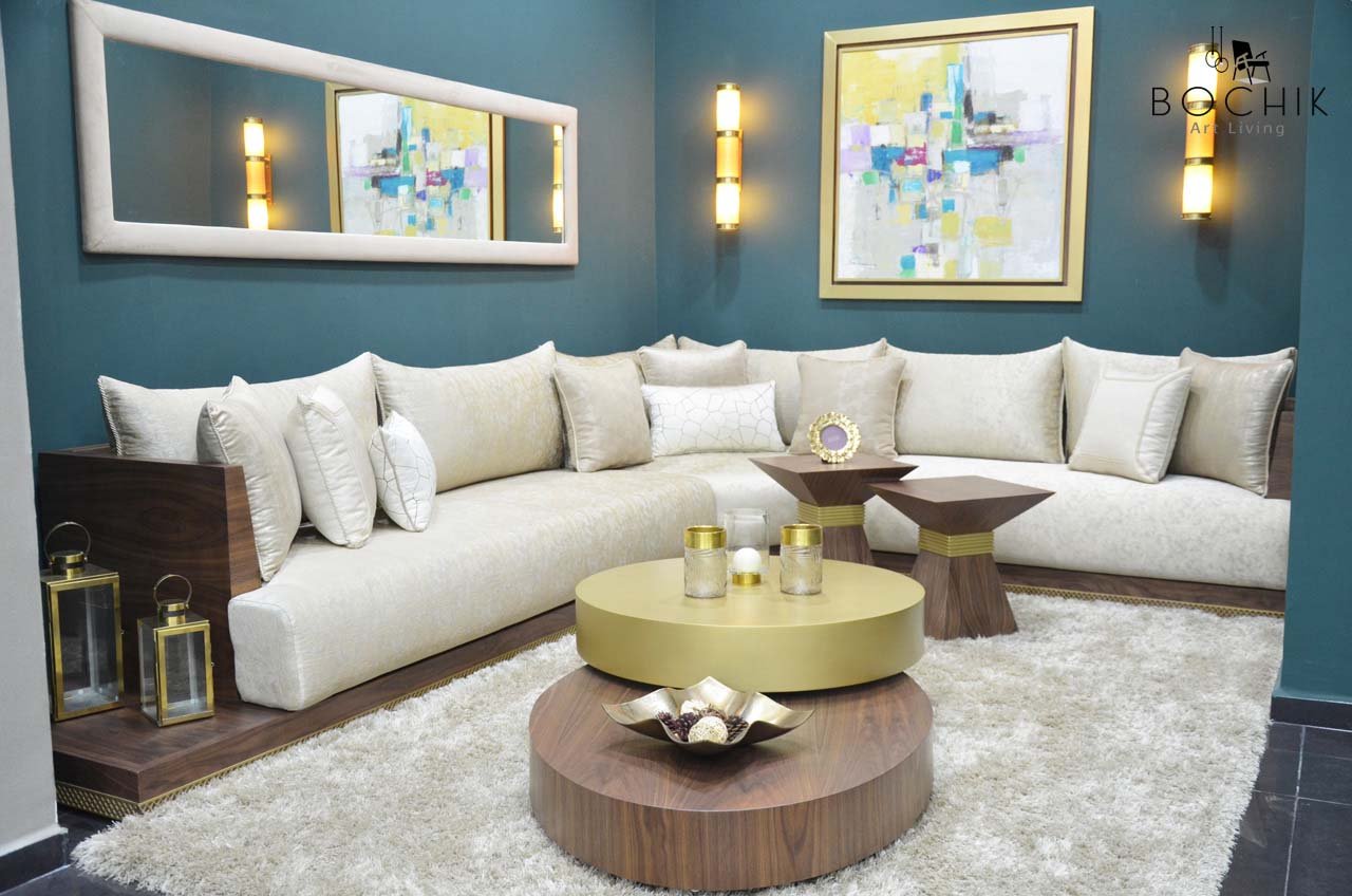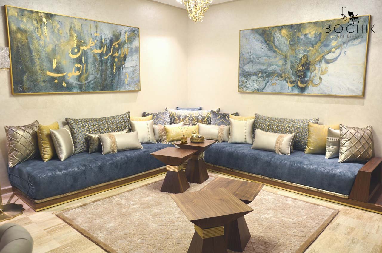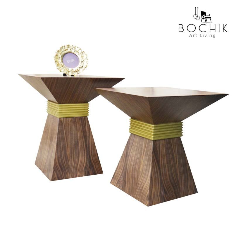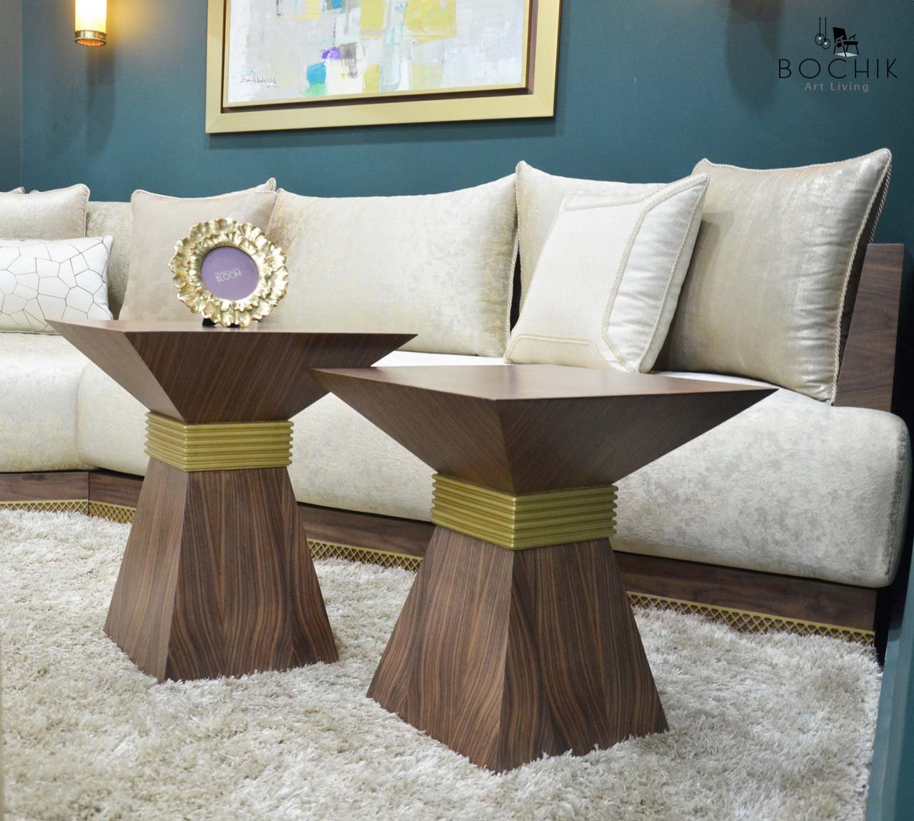 Ensemble de tables d’appoint en bois noyer et laqué Or